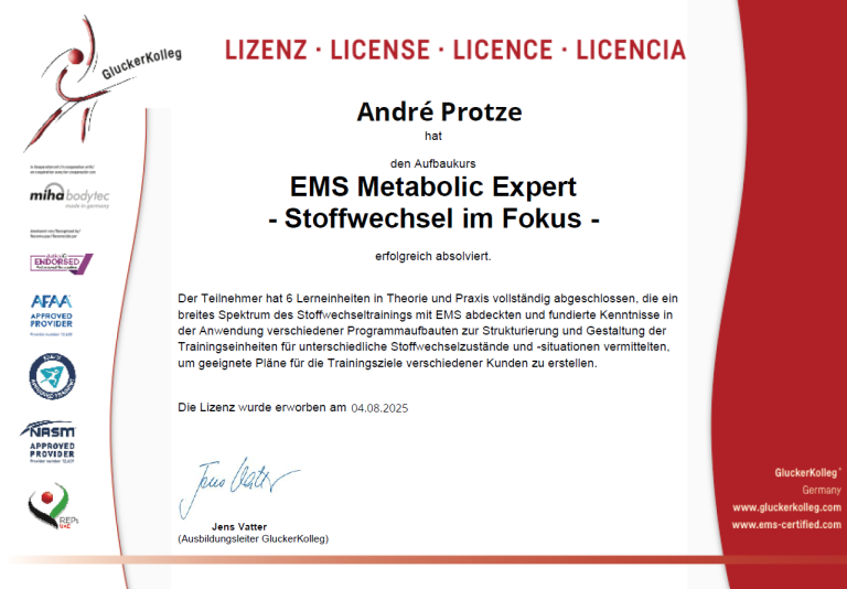 EMS: Elektro-Muskel Stimulation, dabei setzen wir auf die Kombination der mittel- und niederfrequenten Reizströme der Kraftwunder-Technologie. Neben der Stoffwechselaktivierung werden zusätzlich Muskelzellen zum Wachstum angereizt. Das Kraftwunder-EMS-System erreicht dabei auch tiefliegende Muskelschichten, die mit einem herkömmlichen Training kaum angesprochen werden.